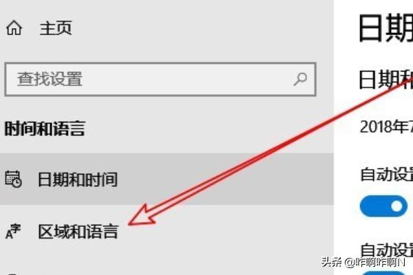 4、接下来在打开的时间和语言窗口中,我们点击左侧边栏的“区域和语言”菜单项。