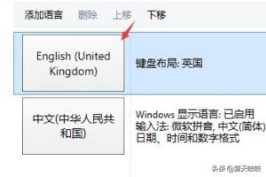 3、接着把刚刚添加的英文输入法向上移一下。如图所示: