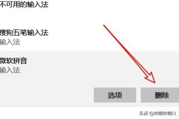 7、我们点击微软拼音后面的“删除”按钮,这样系统就会自动删除微软拼音输入法了。
