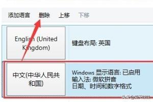 4、选择中文(中华人民共和国),然后再点击上面的删除键就可以完成这个语言的删除。如图所示: