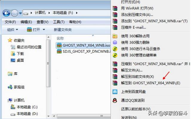 1.下载系统iso镜像到本地,不要放桌面或C盘,右键使用WinRAR等工具解压出来。