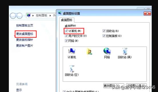 4、然后在弹出的窗口中勾选“计算机”,这样电脑桌面就会显示“此电脑”应用图标了。