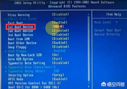 2、设置第一启动顺序-----First Boot Device (=1st Boot Device)。