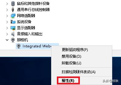 4右键点击摄像头选项,点击属性进入,如下图所示