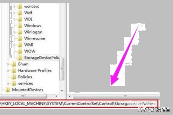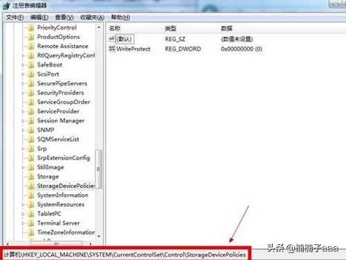 2、接着依次展开到HKEY_LOCAL_MACHINE\SYSTEM\CurrentControlSet\Control\StorageDevicePolicies项。