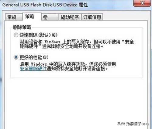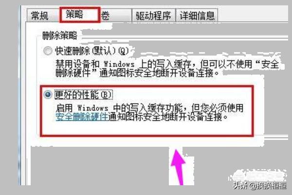 6、最后点击策略页签,勾选更好的性能选项点击确定按钮即可。