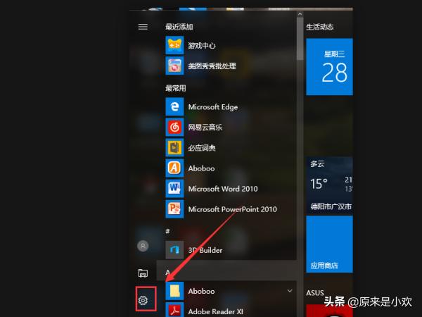 1、以Win10系统为例,打开桌面左下角的“windows图标”,找到“设置”选项。