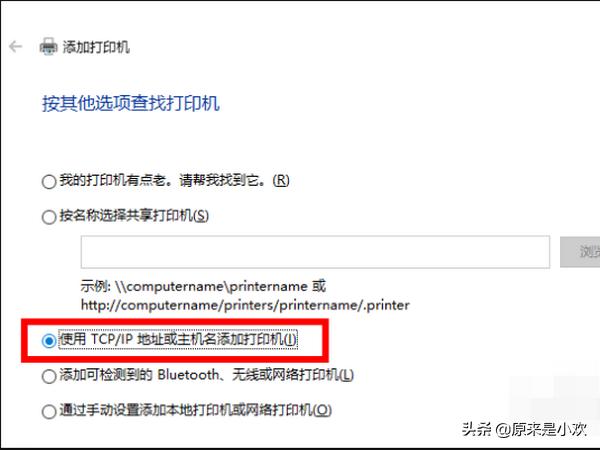5、然后点击“使用TCP/IP地址或主机名添加打印机”。