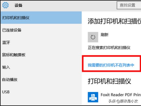 4、搜索之后,点击"我需要的打印机不在列表中"。