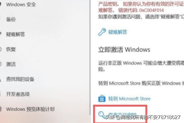 3、来到了激活界面,我们点击下方的更改产品密钥,此时会弹出密钥输入窗口,先把这个窗口放在一边,等下要用到