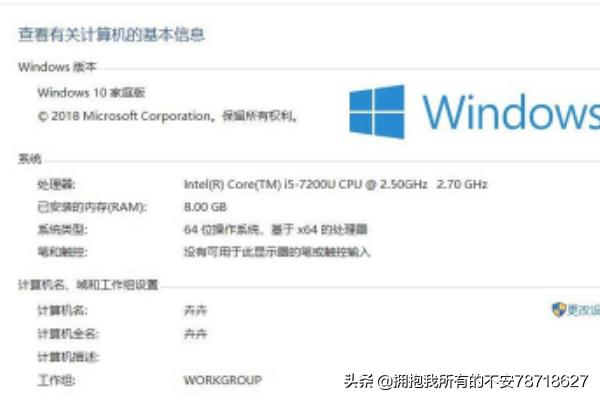 2、来到属性面板,我们可以在中间的部分看到系统的版本信息,如图,windows版本那里显示的是 windows10家庭版,自己先记住,等下回用到,然后点击右下角的激活windows
