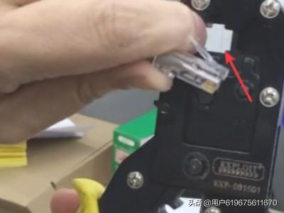 9、最后把水晶头放入工具钳的网线夹口,压紧就完成网线的制作了。