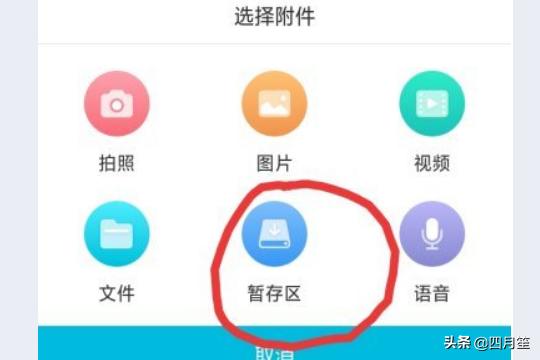 4、在打开的页面中,“选择附件”里面的“暂存区”点击;