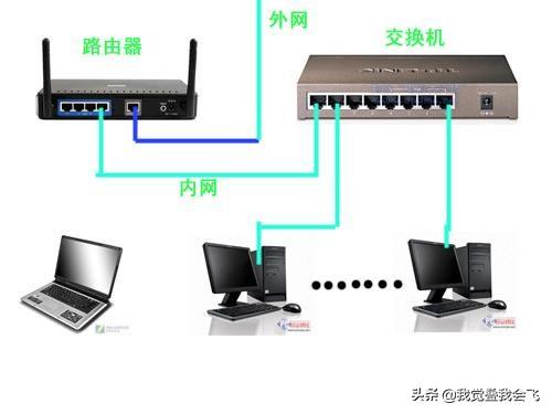 7.路由器出来一根网线接在交换机的任一个端口,所有路由器、交换机的端口都可以插入网线接到电脑网卡上。