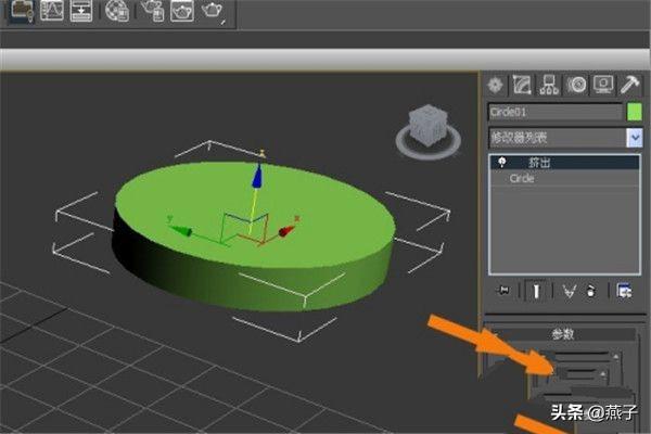 2. 鼠标左键单击修改面板,选择【挤出】命令。 接着, 鼠标左键单击修改面板,选择【挤出】命令,如下图所示。