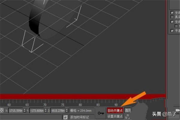 10. 选择【自动关键点】按钮,准备制作一个小动画。 接着,鼠标左键在底部的动画区域中,选择【自动关键点】按钮,准备制作一个小动画,如下图所示。