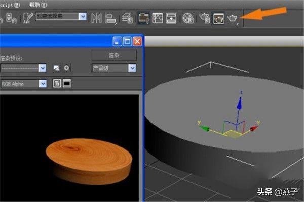 8. 单击【渲染】按钮,可看到渲染的显示效果。 接着,在透视图上的立体圆形没有出现木纹图,单击【渲染】按钮,可看到渲染的显示效果,一个漂亮的案板就做好了,如下图所示。