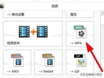 3、点击你要转换成的文件格式,例如转为mp4那么选择下图红色箭头所指的位置。