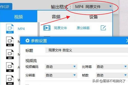 5、点击右上角的输出格式,输出格式选择成MP4。