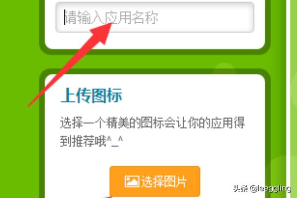 5,此时页面左侧可以设置应用名称,上传图片作为应用图标,图片可以使用系统内置,也可以自行上传,下方有114乘114像素建议,实际图片大小不超过200KB,格式为png或jpg,都可以上传,只是到时会自动进行像素转换。这里输入名称后,点击选择图片。