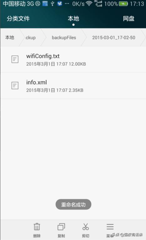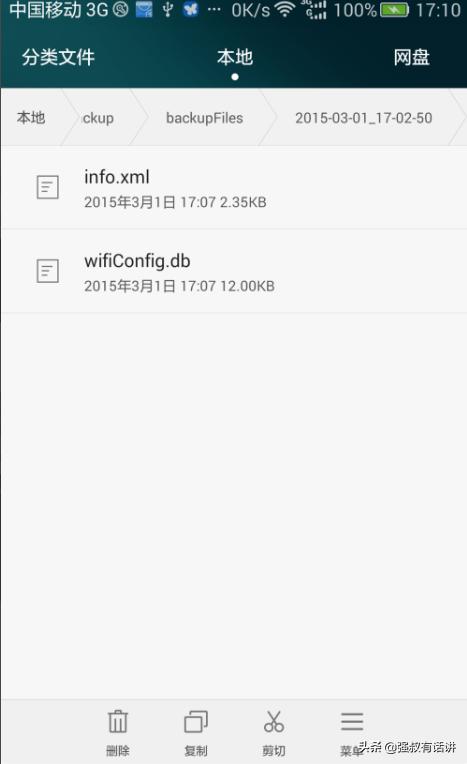 1,现在一般手机都具有数据备份功能,如何没有数据备份功能的手机,可以网上搜索下载一个数据备份的软件,我们就是用数据备份后,再查看备份文件中的wifi密码,这样就可以不用root了!